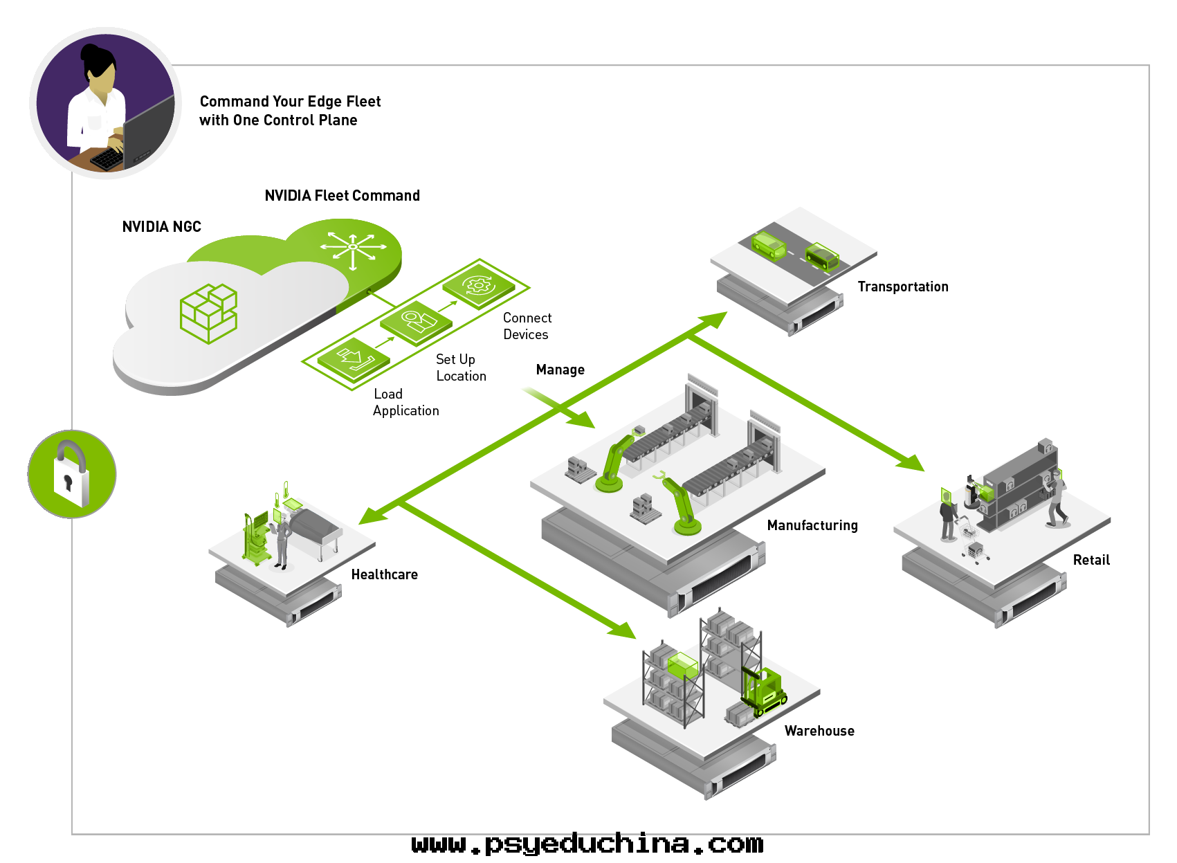 NVIDIA Fleet Command simplifies deployment and centrally manages edge AI through cloud services. With only one system installation at a physical location, the life cycle can be managed end-to-end through Fleet Command, making it easy to remotely deploy, update, and monitor AI. Whether it is a retailer who wants to build a smart store, a hospital that uses AI to improve patient care, or a manufacturer who wants to optimize operations, Fleet Command can help them simplify edge AI management。