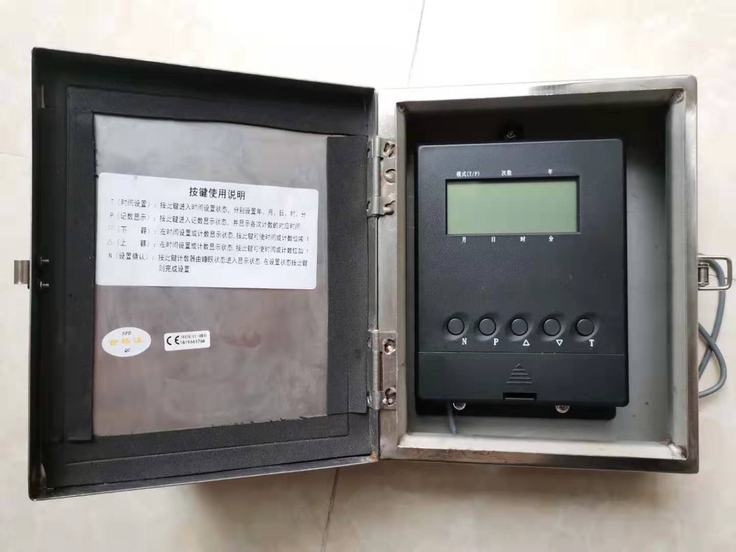 ● 在安裝使用時(shí),先按一下N鍵,計(jì)數(shù)器應(yīng)由眨眼狀態(tài)恢復(fù)為顯示狀態(tài),計(jì)數(shù)次數(shù)應(yīng)為00次,時(shí)鐘應(yīng)為當(dāng)時(shí)的時(shí)間,否側(cè),需要按T鍵進(jìn)行時(shí)間設(shè)置。